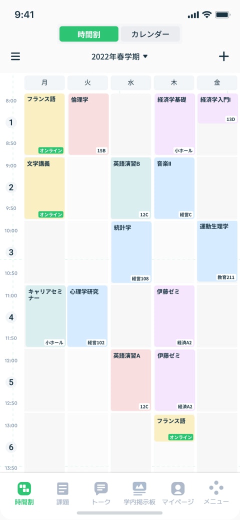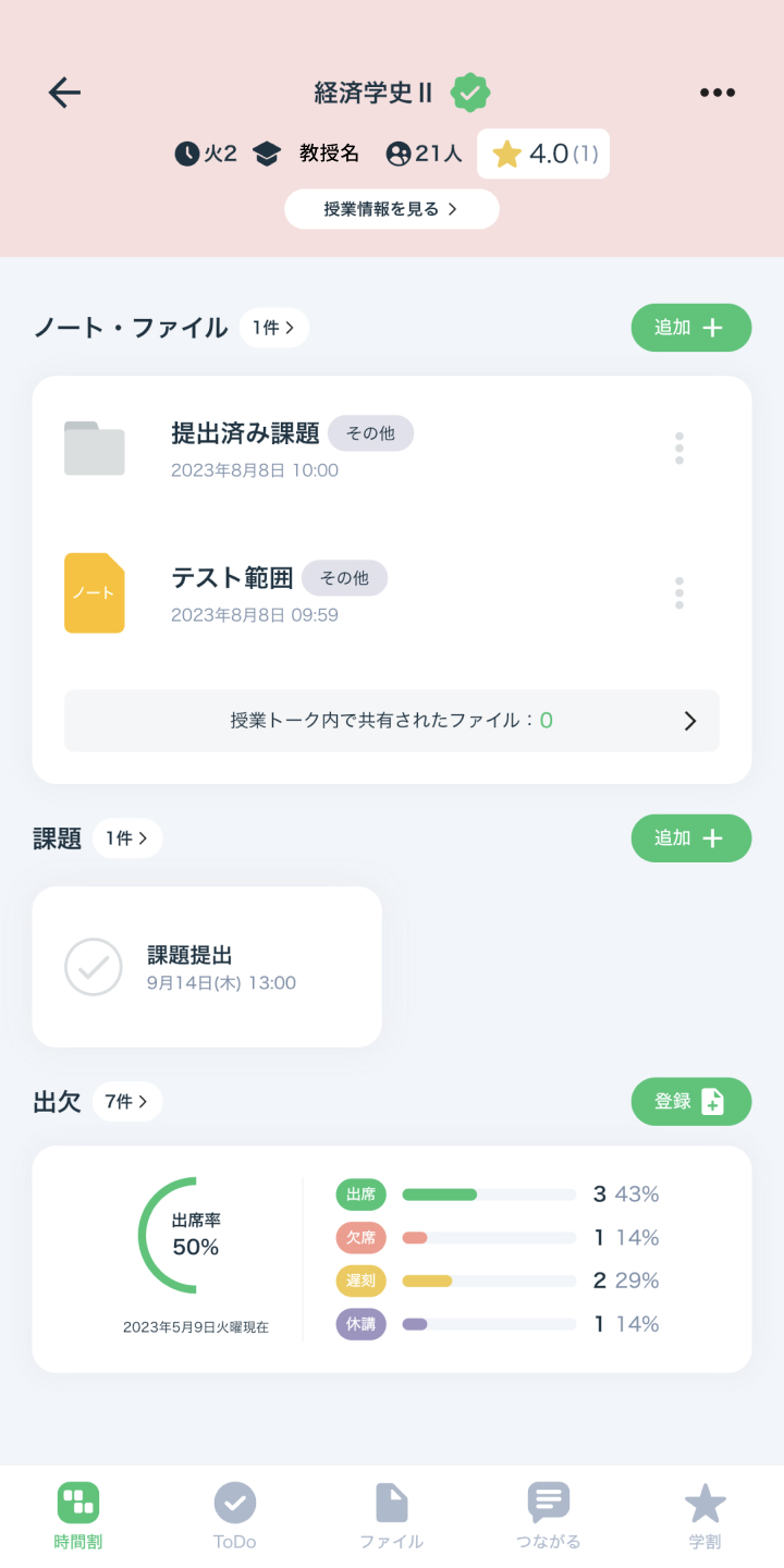 課題の締め切りや出欠数、一口メモを簡単管理。うっかり課題やテストを見逃して落単...なんてことを防げます!